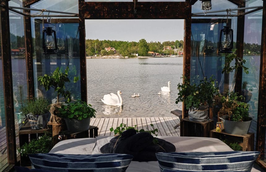 Till Harö Natur tar du dig med egen båt eller med båttaxi från Stavsnäs, så boka bord i förväg. Vill du övernatta på ön finns boende i sjöbodar, i kojor eller i ett flytande växthus med egen brygga, boka även detta i förväg.